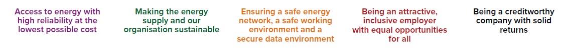 Our activities contribute significantly to the prosperity and well-being of millions of people, for example, by giving consumers and businesses access to energy at the lowest possible cost, facilitating sustainability and striving to be an attractive employer. Our value creation model clearly shows our resources, how we use them, how we add value and the resulting benefits for society.
